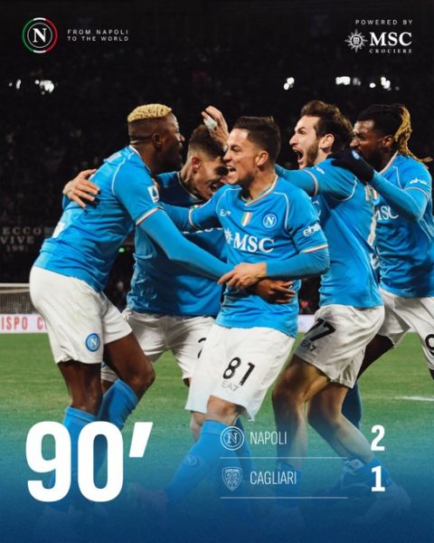 GOL: 69′ Osimhen (N), 72′ Pavoletti (C), 75′ Kvaratskhelia (N)