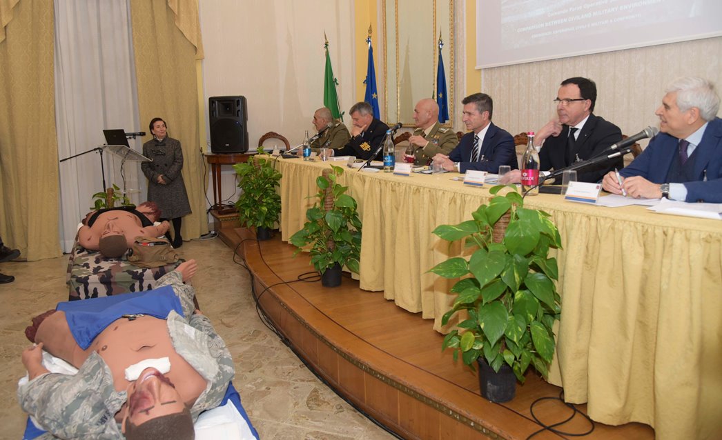 NAPOLI – Mercoledì mattina, 20 febbraio 2019, presso il Circolo Unificato dell’Esercito in Palazzo Salerno, sede del Comando delle Forze Operative Sud, si è svolto il Convegno Nazionale “Comparison between civil and military environment”, promosso da IDMA (International Disaster Medicine Association), da IGESAN, (Ispettorato Generale della Sanità Militare Interforze) e dal Comando Forze Operative Sud, con il supporto organizzativo di PJevents, che ha messo a confronto esperienze civili e militari nelle emergenze. Un convegno, patrocinato dalla Regione Campania, per promuovere la cooperazione tra militari e civili nella gestione dei disastri naturali quali terremoti, uragani, disastri industriali causati dall’uomo nonché in ambito militare in caso di guerre, situazioni di crisi ed atti terroristici. A fare gli onori di casa il Comandante, Generale di Corpo d’Armata Rosario CASTELLANO.