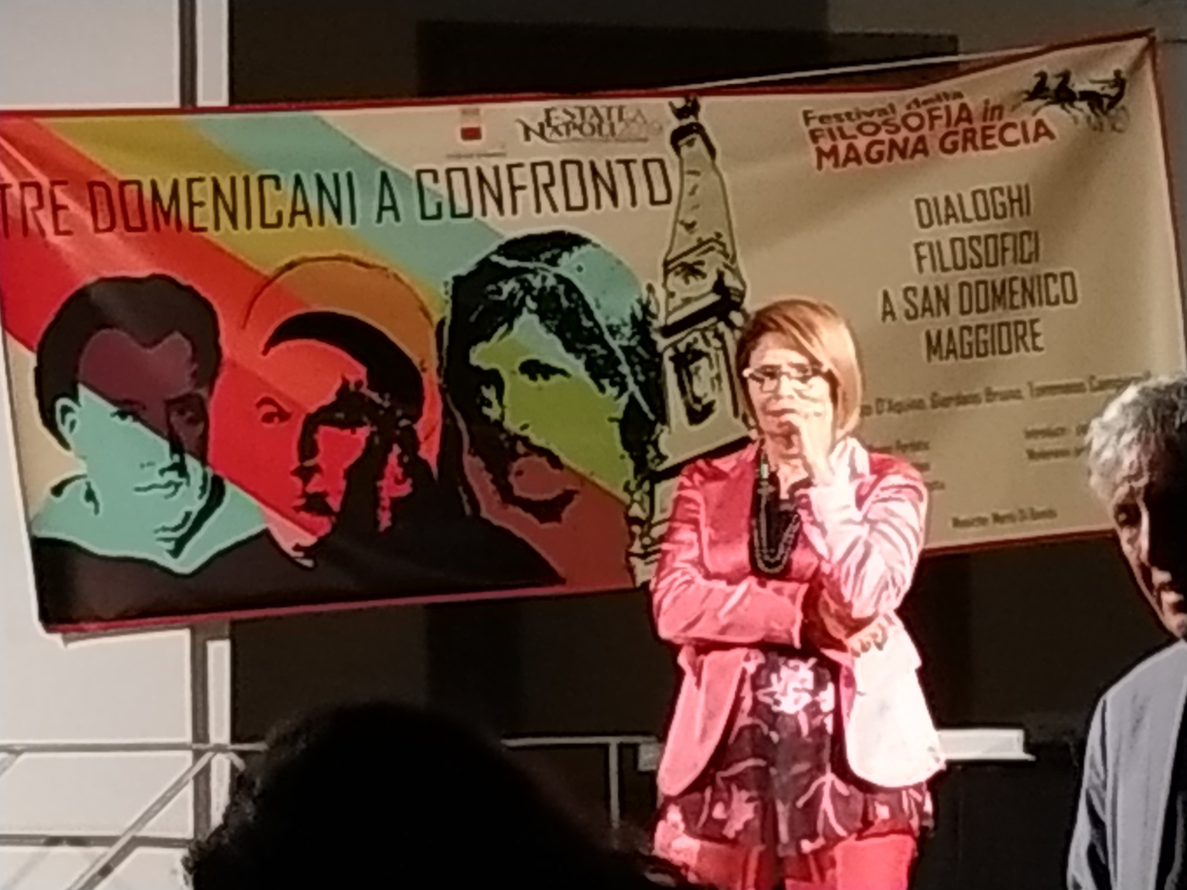 Interessante è stato l’evento del 10 settembre “ Tre domenicani a confronto” presso il Chiostro di San Domenico Maggiore a Napoli, città dalle mille domande, del dubbio, dei contrasti, filosofica da sempre, sede prestigiosa dello studium domenicano, eletta a luogo d’eccellenza da tre grandi protagonisti della storia della filosofia: Tommaso d’Aquino, Tommaso Campanella e Giordano Bruno.