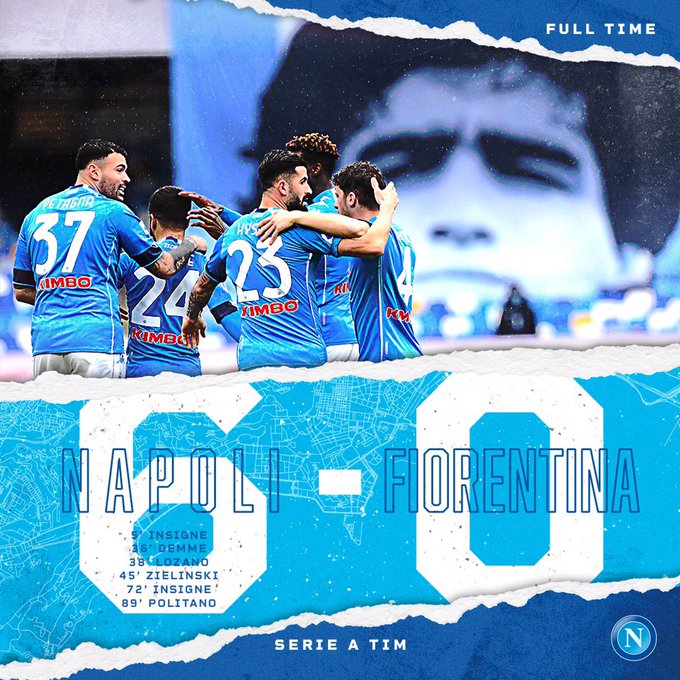 La partita prende una conclusione definitiva grazie a una brutta palla persa di Milenkovic che Zielinski trasforma in un contropiede letale su cui Demme, su altro ottimo servizio di Petagna, appoggia comodamente in rete il gol del raddoppio. Poi ci pensa Insigne, che mette in scena il suo show personale, dribbling sui malcapitati Milenkovic ed Amrabat , ubriacatura totale per i viola, poi apertura classica al solito Lozano, che taglia alle spalle di Igor ed appoggia in porta il gol del 3 a 0, sembrava una replica dei gol che faceva Callejon fino a sei mesi fa.
