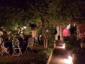 . Dopo essere andati alla scoperta dei sapori e dei suoni dei vigneti con il Jazz in Vigna, la band torna in città, per una nuova tappa del loro gemellaggio con i luoghi simbolo della cultura e della storia dell’urbe. Ad ospitare il Neapolitan Gipsy Jazz dell’ensemble partenopeo, il giardino pensile di Palazzo Venezia con la Casina Pompeiana. Si tratta di un giardino di grande rilievo perché, sebbene mutilato e trasformato dal tempo, esprime in maniera esauriente i caratteri fondamentali dei giardini del centro antico, in cui oggi grazie all’impegno di Gennaro Buccino, è possibile degustare uno stuzzicante aperitivo in un’atmosfera magica e romantica