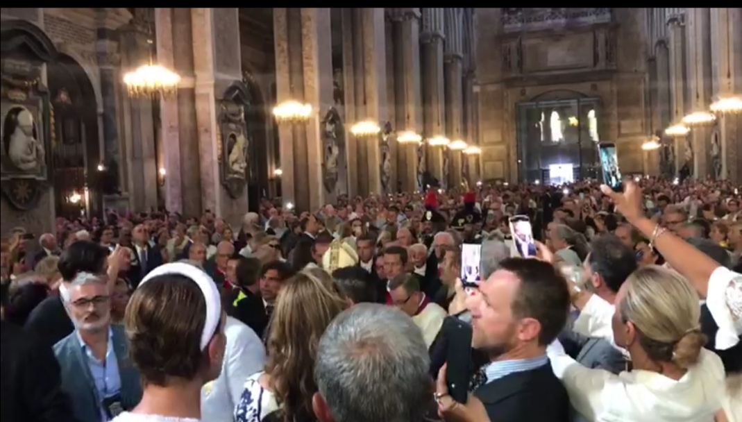 Napoli – La tradizionale mattinata del 19 settembre, nel Duomo di Napoli, si é conclusa in festa : il sangue di San Gennaro, nella teca, si é sciolto.