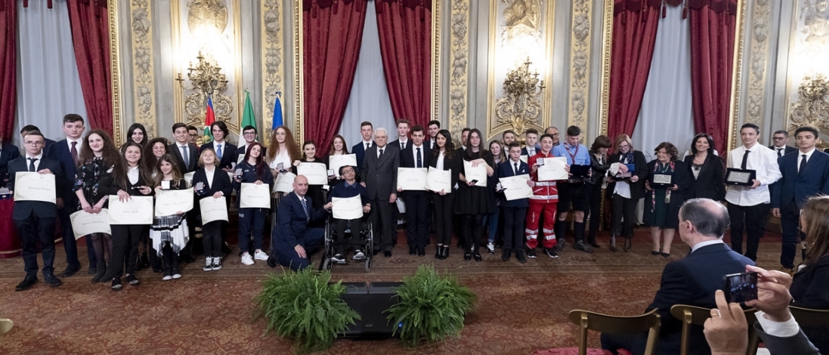 ROMA – Il Presidente della Repubblica, Sergio Mattarella, ha consegnato, mercoledì 13 marzo 2019, 29 Attestati d’onore di “Alfiere della Repubblica” a giovani che si sono distinti come costruttori di comunità, attraverso la loro testimonianza, il loro impegno, le loro azioni coraggiose e solidali. Sono giovani, nati tra il 1999 e il 2008, che rappresentano modelli positivi di cittadinanza e che sono esempi dei molti ragazzi meritevoli presenti nel nostro Paese.