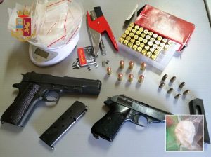 NAPOLI – Ieri pomeriggio gli agenti del Commissariato Ponticelli, durante un servizio di contrasto allo spaccio di sostanze stupefacenti, hanno effettuato un controllo in uno stabile di via Vicinale Pepe ed hanno rinvenuto, occultati nel vano motore dell’ascensore, una pistola semiautomatica completa di 5 cartucce, una pistola con 7 cartucce priva di matricola e 44 cartucce cal.45.