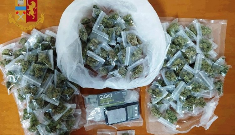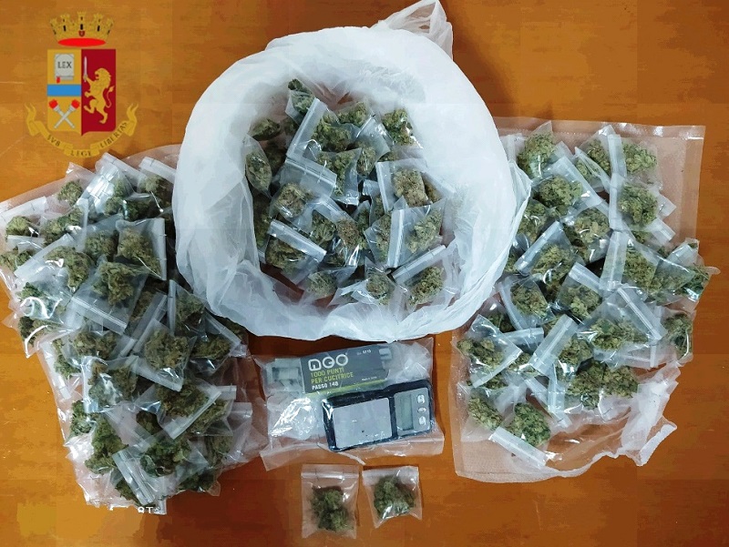 I poliziotti hanno bloccato l’uomo trovandolo in possesso di 3 buste contenenti 150 involucri del peso complessivo di circa 167 grammi di marijuana mentre, in una fenditura delle cabine in legno, hanno rinvenuto altri 2 involucri con la stessa sostanza, un bilancino e diverso materiale per il confezionamento dello stupefacente.