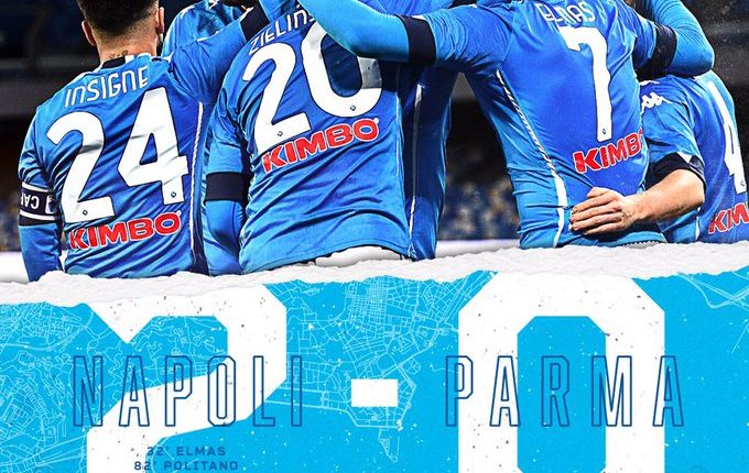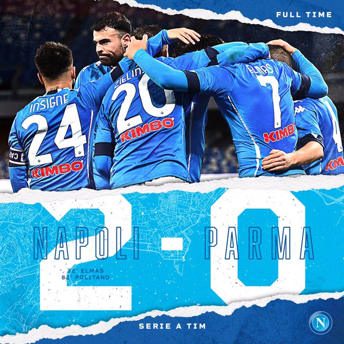 Sono stati realizzati due gol, uno per tempo. Il primo è stato al 32′ quando va in gol di Elmas, il macedone alla prima da titolare in campionato realizza un gran bel gol e porta in vantaggio il Napoli sul Parma: il centrocampista macedone ha ricevuto il pallone sulla trequarti da Demme e dopo aver saltato un paio di avversari ha battuto Sepe dai 16 metri. Pregevole! Al 79′ raddoppio di Politano, che era subentrato a Petagna, ha battuto Sepe con un tiro deviato da Osorio chiudendo di fatto il match. Da sottolineare al 86′ Insigne che colpisce un palo, il numero 24 ha calciato di sinistro sul secondo palo ma la palla ha preso il palo ed è tornata in campo. Sfortunato Insigne, alla ricerca del 100° gol con il Napoli.