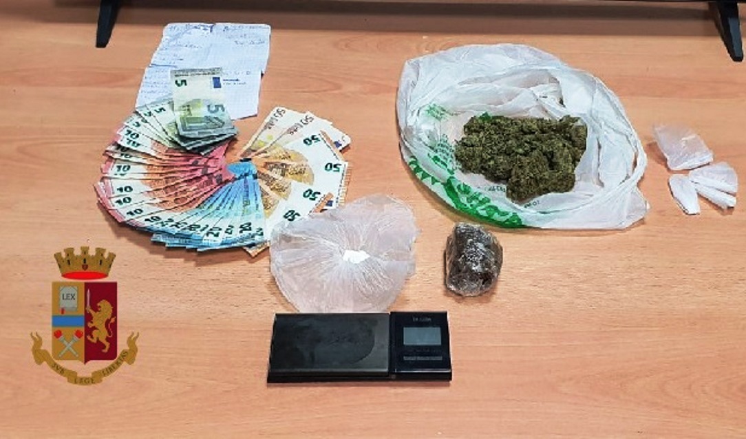 I poliziotti hanno bloccato le due persone e hanno loro sequestrato 19 stecche di hashish, 40 grammi circa di marijuana, un bilancino di precisione e 4 grammi di cocaina nonché inoltre 590 euro.