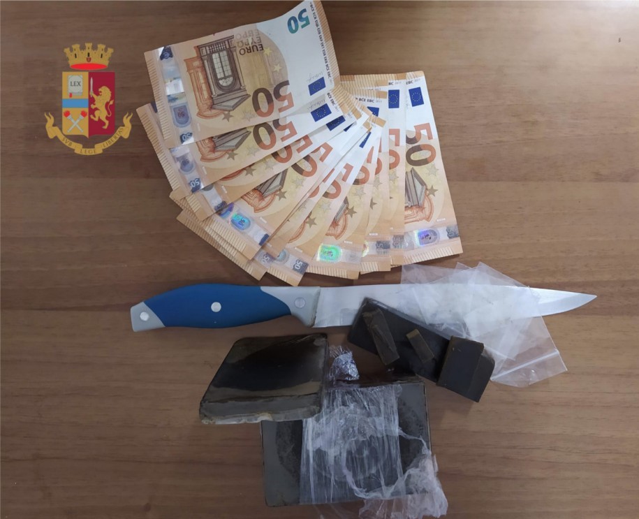 I poliziotti hanno esteso il controllo anche all’abitazione dell’uomo in via Ferrante Imparato dove hanno sequestrato quattro pezzi della stessa sostanza per un peso complessivo di circa 50 grammi, un coltello e delle bustine per il confezionamento della droga.