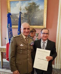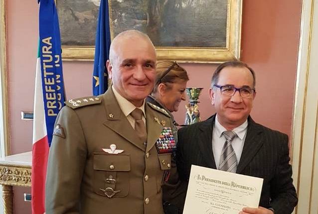 Il Cavaliere ha ringraziato tutte le persone che hanno contribuito al conseguimento di questa onorificenza quali Suoi Superiori Militari, colleghi di lavoro e fratelli delle associazioni, ma in particolar modo sua moglie che in questo periodo lo ha supportato e sopportato per tutte le sue attività in tutti questi anni. Istituito con la Legge 3 marzo 1951 nr. 178 (G.U. nr. 73 del 30 marzo 1951), l’Ordine al Merito della Repubblica Italiana è il primo fra gli Ordini nazionali ed è destinato a “ricompensare benemerenze acquisite verso la Nazione nel campo delle lettere, delle arti, della economia e nel disimpegno di pubbliche cariche e di attività svolte a fini sociali, filantropici ed umanitari, nonché per lunghi e segnalati servizi nelle carriere civili e militari”.