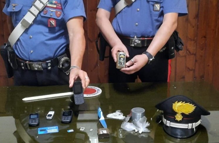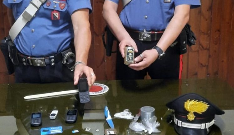 Rinvenuti e sequestrati anche 4 cellulari, 7 sim card, 2 coltelli utilizzati per il taglio, ancora intrisi di sostanza stupefacente e un tritaerba in metallo.