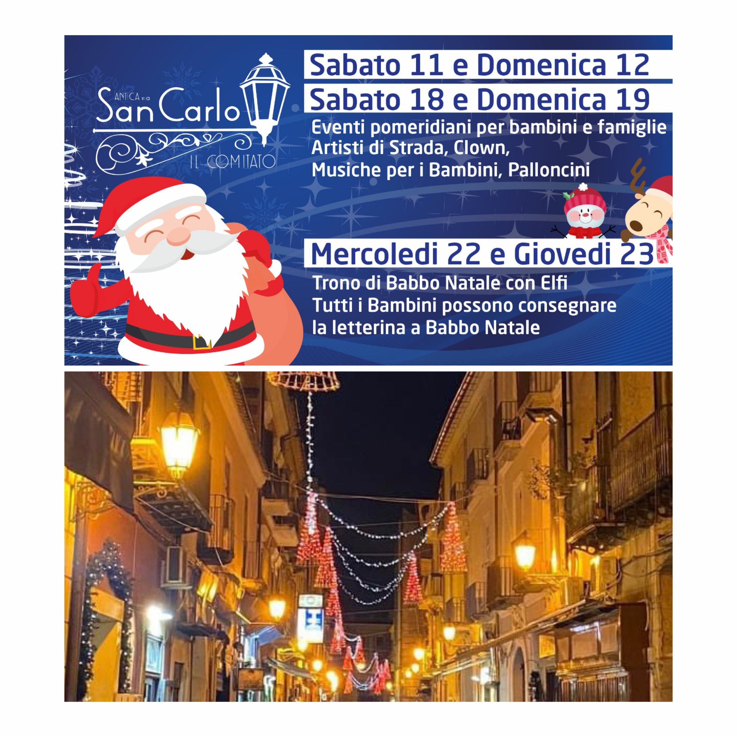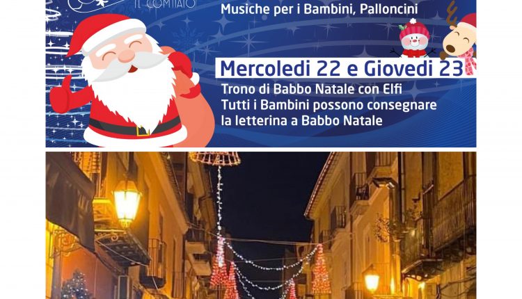 Ma non e’ tutto il comitato ha organizzato per tutti i fine settimana del mese di dicembre / sabato e domenica / una serie di spettacoli di animazione , giocolieri , musicisti e per un trono speciale sul quale siederà’ Babbo Natale pronto a ricevere le letterine dei più piccoli per esaudirne i desideri.