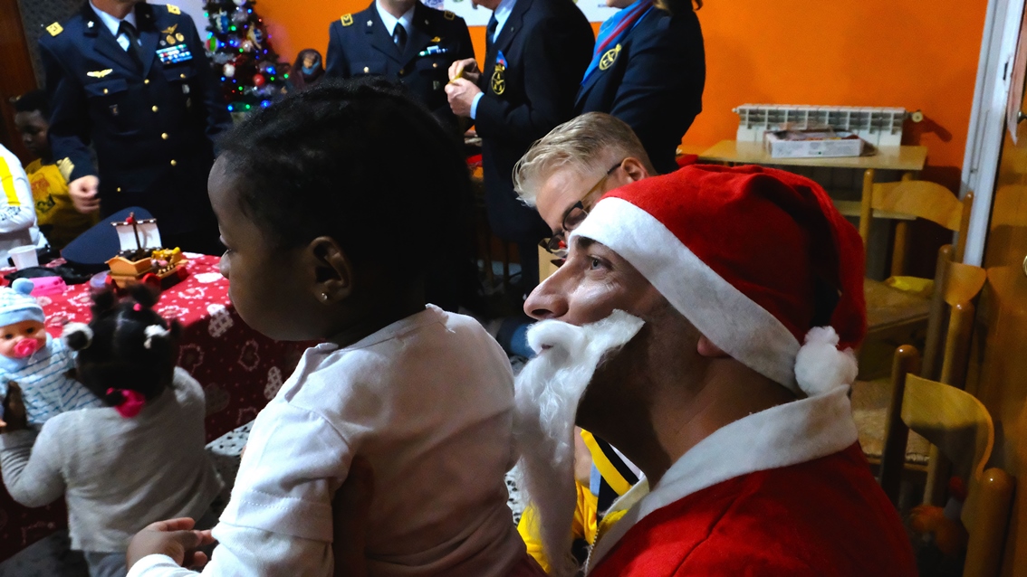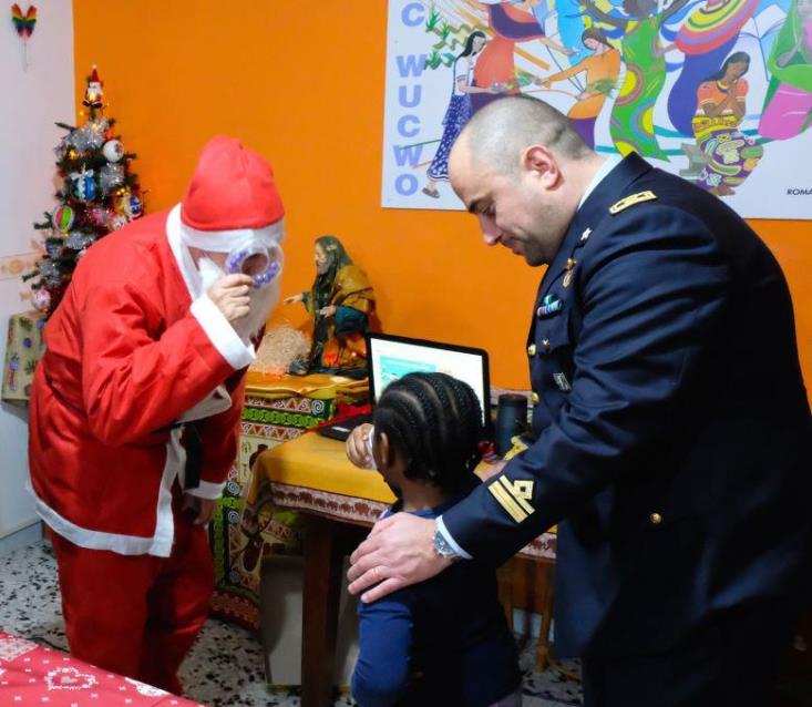 Una rappresentanza di personale sta accompagnando, in questi giorni che precedono il Natale, il Comandante della Scuola Specialisti, Col. Nicola Gigante e il Babbo Natale della Scuola Specialisti, in diverse realtà locali, appositamente selezionate, con l’obiettivo di far sentire l’ideale abbraccio del personale in azzurro e di tutti coloro che hanno voluto contribuire al progetto accogliendo la proposta dell’Aeronautica Militare, come ad esempio le mamme dei bambini e le maestre della Scuola d’infanzia “Il sorriso dei bimbi” di Capodrise, in provincia di Caserta.