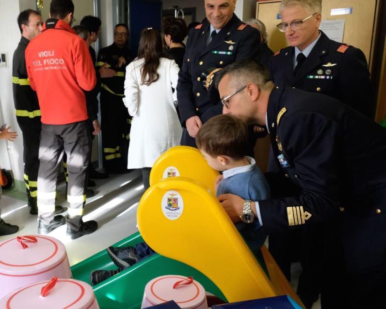 La consegna del ricavato dell’iniziativa solidale da parte di una delegazione di personale della Scuola Specialisti, è avvenuta in un clima di festa – alla presenza del sindaco di Caserta, Avv. Carlo Marino – direttamente al Reparto di Pediatria, nelle mani del Direttore, prof. Felice Nunziata, con i bambini ricoverati, i loro genitori e il personale ospedaliero, in occasione del tradizionale scambio di auguri per le festività natalizie insieme ai rappresentanti dell’Esercito, dell’Arma dei Carabinieri, della Guardia di Finanza, della Polizia di Stato e dei Vigili del Fuoco. Anche il Reparto di Pediatria ha ricevuto parte dei giocattoli raccolti con l’iniziativa de “Il Babbo Natale della Scuola Specialisti” destinati, in questo caso, alla sala giochi dei piccoli ricoverati. La Scuola Specialisti dell’Aeronautica Militare riafferma così la vicinanza al territorio di Terra di Lavoro e ai suoi cittadini più bisognosi, con un ulteriore atto che si aggiunge ai tanti altri dell’anno che sta per concludersi, dalle numerose donazioni di sangue, con oltre 350 sacche ematiche donate nel corso dell’anno che sta per concludersi, o alle iniziative per la formazione dei giovani del territorio con il progetto “School Talk”, un vero e proprio esperimento di peer education teso a far crescere nei giovani – attraverso esperienze concrete, esempi positivi e la conoscenza delle storie personali di successo – consapevolezza nei propri mezzi e delle loro potenzialità per recuperare sicurezza in se stessi e affrontare le sfide che la vita propone.