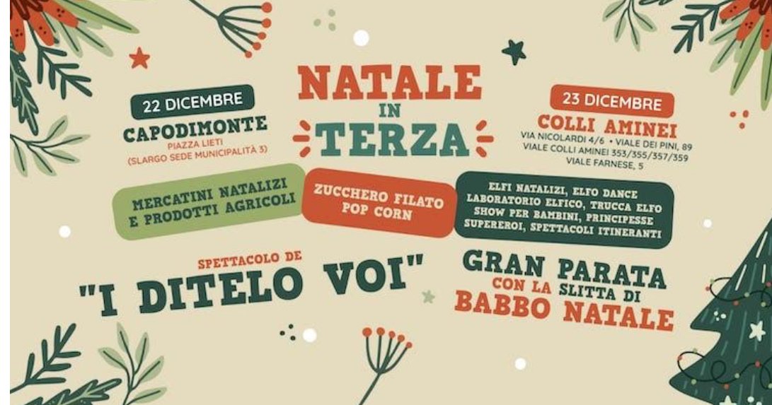 “Natale in terza” è una manifestazione natalizia promossa dalla III° Municipalità e dal Comune di Napoli organizzata dalla società Graf srl. Nell’occasione che celebra la sacralità della famiglia, gli organizzatori hanno pensato di donare ai bambini e bambine alcuni momenti di spensieratezza per vivere ancora più intensamente le festività.