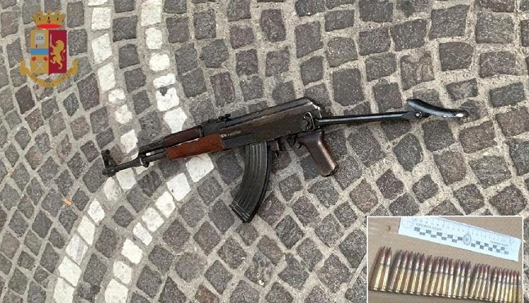 I poliziotti hanno recuperato un kalashnikov AK-47, con matricola abrasa, completo di caricatore contenente 26 cartucce cal. 7,62.