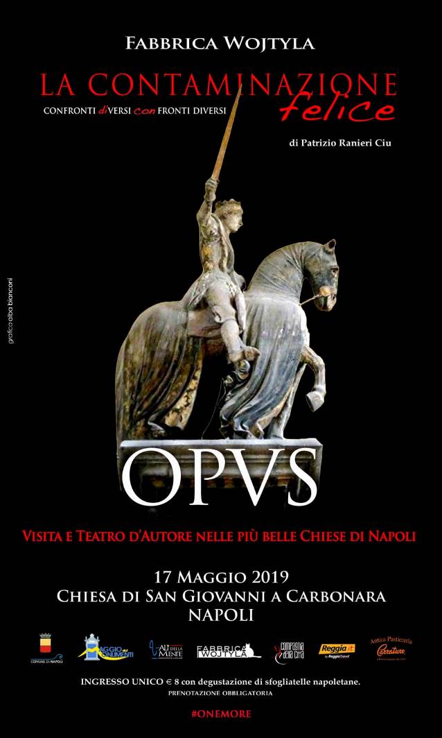 Straordinaria “première” di OPUS, il nuovo ed originale format teatrale di Fabbrica Wojtyla firmato da Patrizio R. Ciu ed ambientato nella chiesa museo di S. GIOVANNI A CARBONARA sotto l’egida del Comune di Napoli.