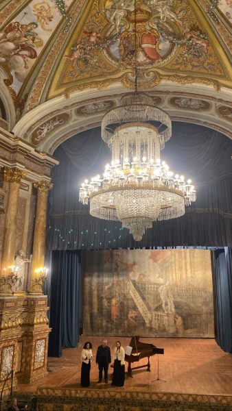 Non poteva mancare, all’interno del teatro di corte, l’esibizionedella Soprano, accompagnata dal clavicembalo di Maria TeresaRoncone, sulle musiche di Galuppi, Gluck, Paisiello e Cimarosa, coevi e molto amati da Luigi Vanvitelli.