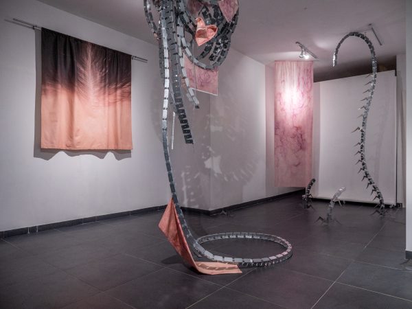 Studio Orma è un neonato spazio espositivo dedicato all’arte contemporanea, nel cuore di Monteverde a Roma. Fondato da Edoardo Innaro e Marco Celentani, si è generato grazie a una fitta rete di collaborazioni tra giovani creativi attivi in diversi ambiti. Una location concepita come un “laboratorio umano”, dove l’arte è strumento di sperimentazione e coltivazione antropologica. È un ibrido tra artist-run space, project room e galleria: incontro, dialogo e tessuto relazionale sono il cuore dell’attività dello studio. Il nuovo programma espositivo di Studio Orma si concentra sulla nuova generazione di artisti under 30, con particolare attenzione a linguaggi emergenti e a formati che sfidano le convenzioni. In questo contesto si privilegiano i progetti site-specific volti a trasformare lo spazio e a indagarne le possibilità formali, muovendo un interrogativo di fondo: quali sono i limiti di una stanza? La mostra “A screen has no edges”, personale di Emanuela Moretti, ricostruisce un interno domestico, al tempo stesso familiare e conturbante. Lo abitano forme amorfe, simulacri di un corpo femminile frammentato che sembra deformarsi nel tentativo di vivere più esistenze simultanee. Il corpo si espande nello spazio come un organismo ibrido: distinguiamo vertebre meccaniche che ricordano la morfologia di insetti.
