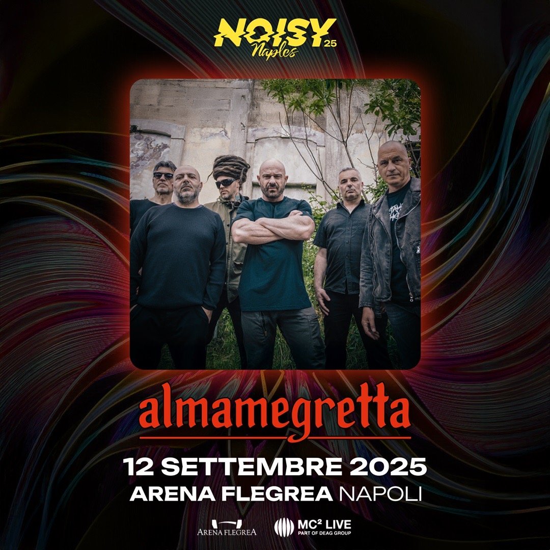 opo il clamoroso sold out del tour invernale, gli Almamegretta tornano a esibirsi dal vivo questa estate con un tour che celebra il 30° anniversario di “Sanacore”. Venerdì 12 settembre 2025 porteranno il loro incandescente live a Napoli, all’Arena Flegrea, nell’ambito dell’ottava edizione del Noisy Naples Fest.