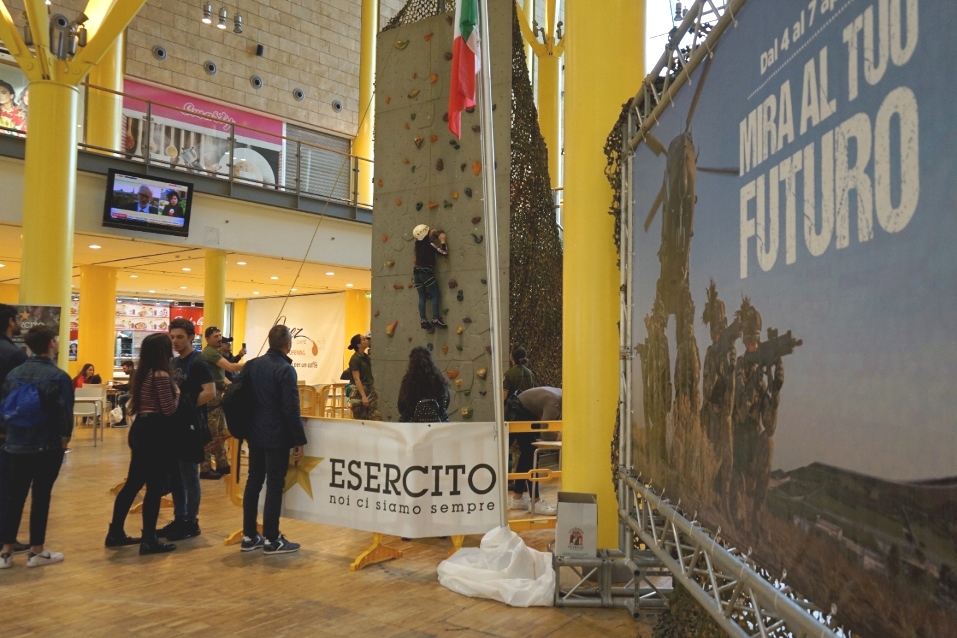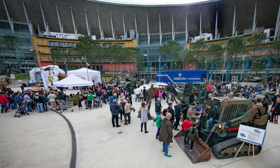 La manifestazione si è proposta anche come momento di riflessione sulle attività operative dell’Esercito Italiano e sulla loro importanza. A tal proposito, sono stati organizzati degli incontri mattutini nelle giornate del 4 e 5, nelle sale cinema “The Space”, dove si sono svolte conferenze di orientamento, al fine di illustrare le possibilità professionali che la Forza Armata offre mediante i bandi concorsuali nelle categorie di Ufficiali, Sottufficiali, Allievi delle Scuole Militari e Volontari in Ferma Prefissata. Nella Piazza Centrale del Vulcano Buono, centro commerciale progettato dall’Architetto Renzo Piano, con 31 aree espositive e 4 aree all’interno della Galleria, il pubblico di tutte le età ha potuto ammirare e toccare con mano numerosi mezzi tecnologicamente avanzati e di ultima generazione come: l’elicottero A129 “Mangusta” di cui si è potuto provare l’ebbrezza del volo grazie al simulatore “ROLFO”; i velivoli a pilotaggio remoto “DRONI”; una Blindo Pesante “Centauro”, un Veicolo Tattico Leggero Multiruolo VTLM “Lince” (in configurazione ambulanza), un veicolo cingolato da combattimento VCC “DARDO”, un Veicolo Tattico Medio Multiruolo VTMM “ORSO” (in configurazione ambulanza) ed un Veicolo Blindato Medio VBM “FRECCIA”.
