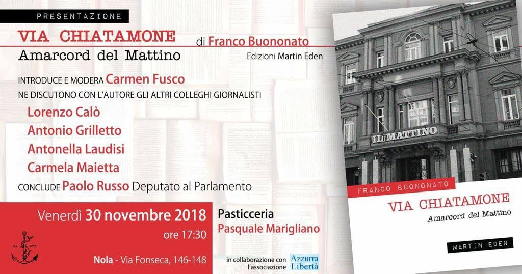 C’è tutto questo nelle pagine di “Via Chiatamone”, il lavoro firmato da Franco Buononato, cronista di razza che ha rivestito ruoli di spicco nella grande redazione del giornale fondato il 16 marzo del 1892 da Edoardo Scarfoglio e Matilde Serao.