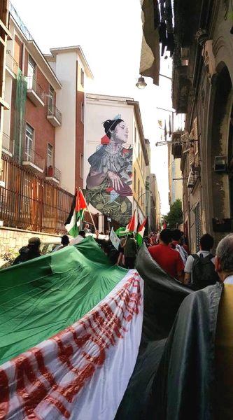 Oggi in piazza Mercato alle 16 a Napoli si è svolta una manifestazione partecipata da molte associazioni e molti comitati in solidarietà con il popolo palestinese. Da giorni a Gaza non c’è più elettricità, cibo, carburante e i pochi aiuti umanitari, provenienti dall’Egitto, vengono bloccati a causa dei bombardamenti al valico di Rafah.Il governo israeliano continua a macchiarsi di gravi violazioni del diritto internazionale: ha disposto l’ordine d’evacuazione di 22 ospedali, già stremati dalle migliaia di feriti e martiri, e bombardato 4 strutture sanitarie e varie ambulanze, utilizzando anche armi chimiche illegali come il fosforo bianco.I dati evidenziano come, in una sola settimana, siano state utilizzate oltre 6000 bombe, più di quante ne siano state sganciate in Afghanistan nell’arco di un’anno dalla NATO.Tutto ciò avviene nel contesto del piano strategico più generale che la forza occupante sionista, da oltre 75 anni, conduce attraverso il colonialismo, l’apartheid e negando il diritto al ritorno dei palestinesi della diaspora, nel silenzio di tutta la comunità internazionale. I manifestanti credono inderogabile chiedere alle Nazioni Unite di far rispettare la Convenzione di Ginevra e intervenire per fermare il massacro in atto.I governi occidentali e la stampa, nel loro silenzio più assoluto, si dimostrano ancora complici dell’occupazione sionista nei territori palestinesi e responsabili di un massacro senza precedenti.Il popolo palestinese ha dimostrato, nonostante il genocidio in atto a Gaza, una grande capacità di resistenza e di volontà di esistere, per porre fine a un sistema di occupazione brutale il cui unico obiettivo è la pulizia etnica, l’espulsione dell’intero popolo palestinese dalla propria terra.