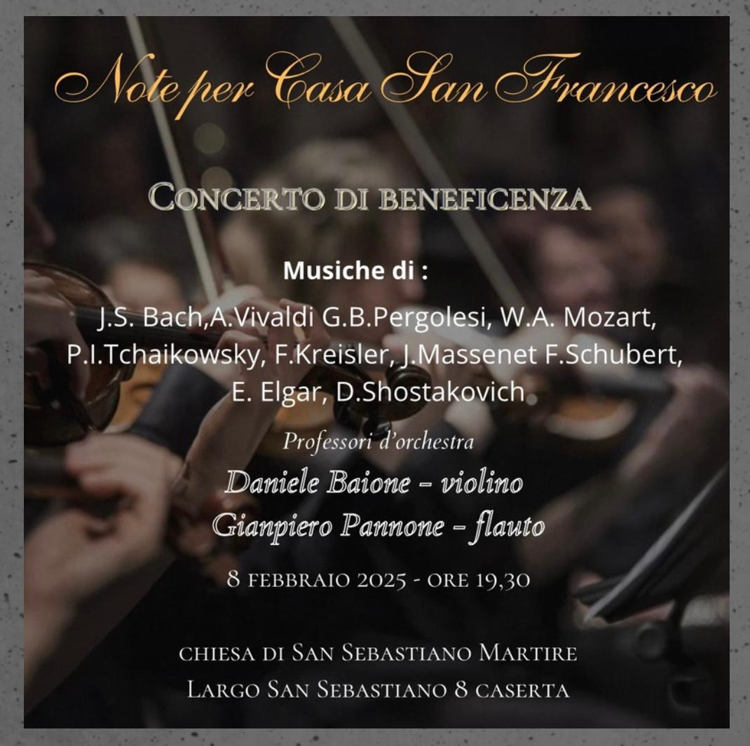 Sabato 8 febbraio 2025, alle ore 19,30, nella splendida cornice della centralissima Chiesa di San Sebastiano Martire, si terrà un concerto di beneficenza per finanziare le attività di Casa San Francesco, la struttura gestita dall’Associazione di Volontariato San Francesco d’Assisi Odv.