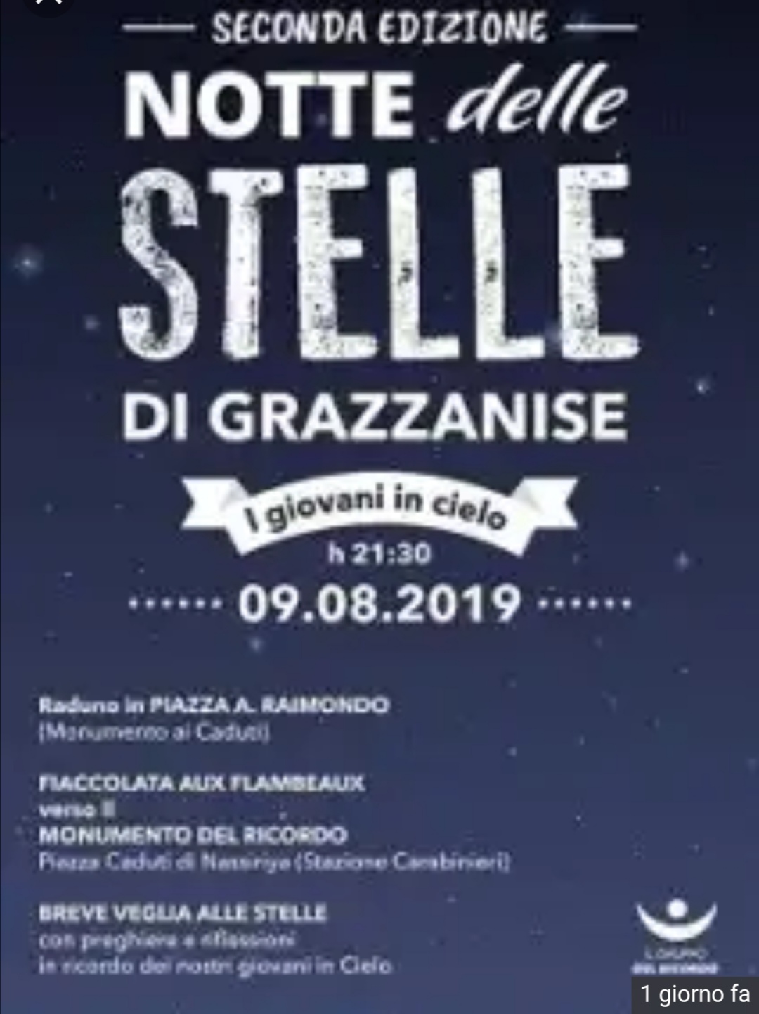 fenomeno astronomico delle stelle cadenti, assumendo però un valore poco connesso all’effimero dilagante e legato invece ad una liturgia di grande valore umano proiettata alla sincera celebrazione del ricordo, sempre struggente, di tutti i giovani grazzanisani che prematuramente hanno perso la vita, per lo più in tragiche