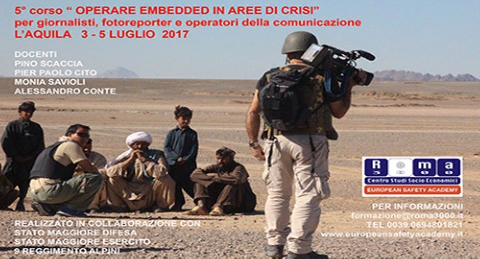 Parte la 5° edizione del corso “Operare Embedded in Aree di crisi” per giornalisti, operatori della comunicazione e ONG che si terrà dal 3 al 5 Luglio 2017 all’Aquila.