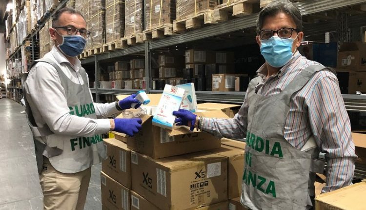In particolare, il 19 maggio i finanzieri accedevano presso un ingrosso di articoli di elettronica di Casoria dove rinvenivano circa 21.000 mascherine FFP2 riportanti il marchio “CE” falsificato e accompagnate da una certificazione altrettanto falsa rilasciata da un ente non accreditato. Sono stati inoltre sequestrati 565 termo-scanner sprovvisti del regolare marchio CE previsto per tali dispositivi medici.