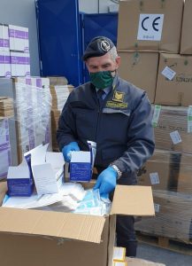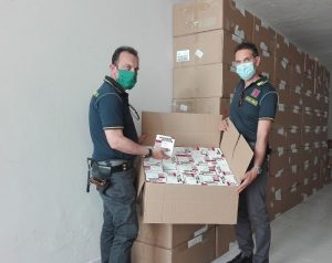 Presso il magazzino della società sono stati, infatti, rinvenuti numerosi pacchi contenenti complessivamente oltre 132.500 mascherine facciali di provenienza cinese con il marchio certificativo “CE”, che dovrebbe rappresentare il lasciapassare di sicurezza per la vendita di prodotti fabbricati fuori dall’Unione Europea, apposto sulla base di un “Certificate of Compliance” rilasciato da un soggetto non abilitato alla certificazione comunitaria.