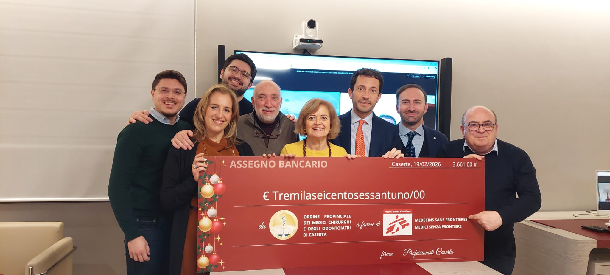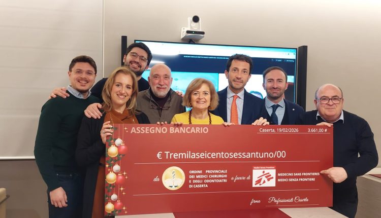 Un assegno di tremila e 661 euro è stato devoluto a Medici Senza Frontiere dall’Ordine provinciale dei Medici Chirurghi e degli Odontoiatri di Caserta, a conclusione dell’evento di beneficenza svoltosi lo scorso 23 dicembre a Palazzo Paternò.