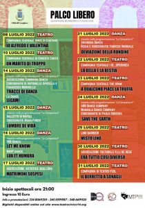 Dal progetto La Campania è, nasce una programmazione che unisce festival, rassegne, residenze artistiche e laboratori formativi sparsi in quaranta comuni fino al mese di ottobre. Il calendario fitto di appuntamenti coinvolge molteplici realtà del territorio. A Caserta, protagonista della danza e dello spettacolo è l’associazione Arabesque che insieme a Dietro Le quinte, propone per il secondo anno consecutivo “Palco Libero”, al quartiere Borbonico di Casagiove.