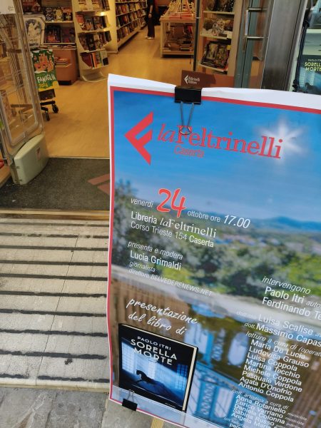 Venerdì 24 ottobre la libreria Feltrinelli di Corso Trieste a Caserta  ha ospitato la presentazione di Sorella Morte, l’ultimo romanzo di Paolo Itri, ex magistrato e oggi autore di thriller profondamente umani e psicologici. Il dibattito, moderato dalla giornalista Lucia Grimaldi, direttore della nostra testata, e seguito da un pubblico attento e partecipe, è stato un interessante momento di confronto e riflessione arricchito dagli interventi del giornalista Ferdinando Terlizzi, del criminologo Massimo Capasso, della avv.  Luisa Scalise  e coadiuvato della redazione di Belvederenews.2.0. La presentazione rientra nel’ambito della rassegna organizzata dall’Unac di Maddaloni, UBIM by Antonio Del Monaco, giunta alla sua V edizione, con la direzione artistica di Michele Letizia.