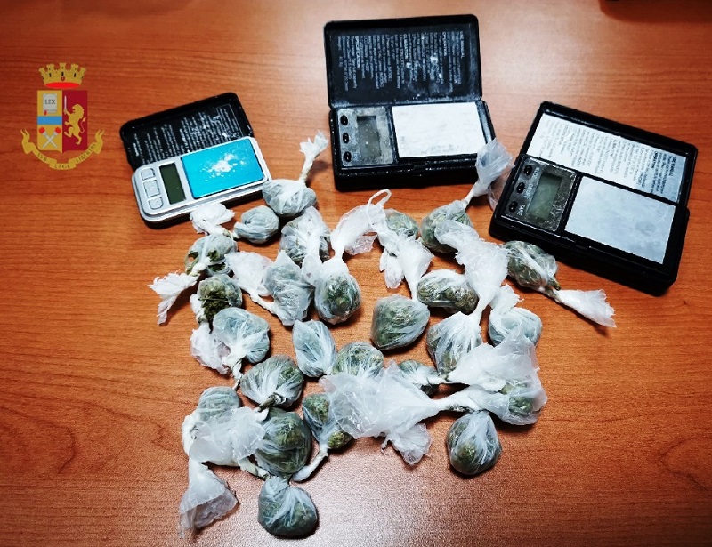 I poliziotti hanno bloccato la donna trovandola in possesso di 25 involucri di marijuana per un peso complessivo di circa 22 grammi e, occultato in un passeggino nel vano scala, hanno rinvenuto 3 bilancini di precisione.