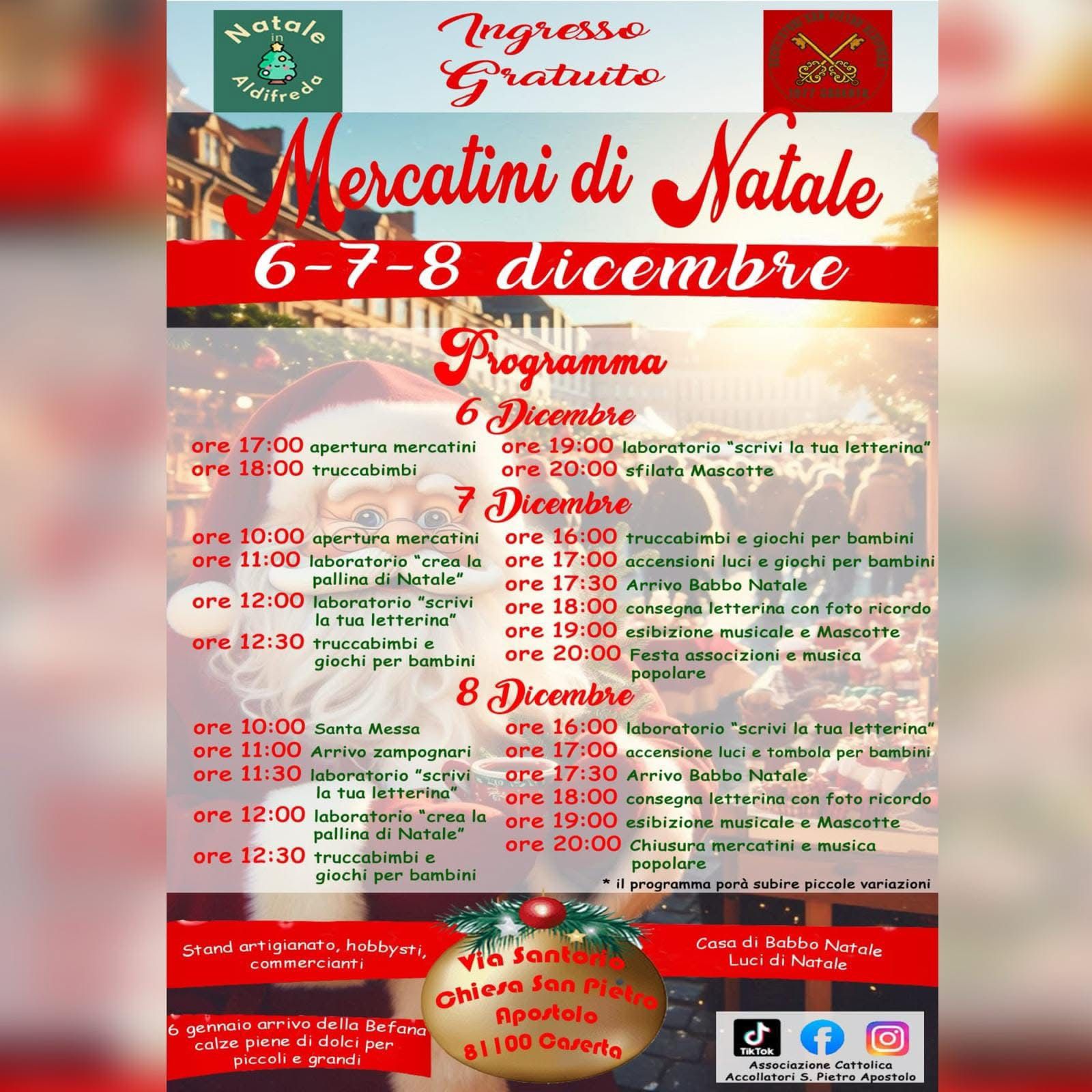 Parte questo fine settimana l’evento “Natale in Aldifreda”, che vedrà protagonisti grandi e piccini con mercatini di natale, momenti musicali e la casa di babbo natale, dove i più piccoli potranno fare la foto e scrivere la propria letterina. La giornata di sabato 7 dicembre vedrà in scena i bottari di Portico dí Caserta che andranno ad allietare la serata a partire dalle ore 20, mentre il giorno 8 dicembre vedrà tra balli e canti “la barca di teseo”. L’evento si svolgerà 6-7-8 dicembre presso il giardino parrocchiale della Chiesa di San Pietro Apostolo in Aldifreda e tutto il ricavato verrà utilizzato per l’acquisto di Giochi per i bambini del reparto di Pediatria dell’ospedale di Caserta, gli stessi che verranno consegnati dall’associazione Accollatori stessa il 22 Dicembre. Vi aspettiamo in tanti, ci saranno tante sorprese!