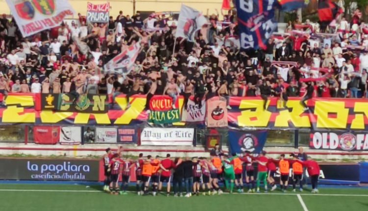 La Casertana esce promossa dalla prova del “nove” sconfiggendo al “Pinto” 1 a 0 l’ottimo Taranto, ma quanta sofferenza! In vantaggio per quasi tutto il match, i “falchetti” hanno giocato una gara di pazienza e un po’ troppo sulla difensiva, visto che la squadra pugliese ha avuto svariate occasioni per almeno pareggiarla. Alle formazioni, Cangelosi insiste sul 4-2-3-1, che ultimamente sta dando buoni frutti, dall’altra parte l’ex Eziolino Capuano vara un offensivo 3-4-3. I ritmi sono alti sin dalle prime battute, si può immaginare una partita ricca di gol. Al 10’ il momento clou della partita: un tiro-cross dalla destra di Curcio, apparentemente innocuo, attraversa la porta e, spinto forse un po’ dal vento, si infila nell’angolo del secondo palo per l’1-0 dei campani. La Casertana sembra ora in fiducia, ma già da questi istanti comincia l’assedio pugliese che durerà in pratica tutta la partita. Al 17’ ci prova infatti Bifulco con la respinta di Venturi. Al 31’ ancora Bifulco mette un ottimo cross per Riggio, che di testa va vicinissimo al pari. La Casertana, dal canto suo, si affida ai contropiedi, i quali sono comunque pericolosissimi. Come sullo scadere del primo tempo, quando Tavernelli trova un corridoio in velocità e serve al centro Carretta, che da ottima posizione sciupa tutto mettendola alta. Nella ripresa il leitmotiv non cambia: Taranto diventa più offensivo (Capuano le prova tutte), Casertana si rintana sempre di più. Al 57’ un pallonetto velenosissimo di Luciani per poco non sorprende Venturi, che lo alza in angolo. Altra occasione pugliese al 76’ con il cross di Kanoute che trova la testa di Enrici: fuori. Col passare del tempo, aumenta la stanchezza per la Casertana, ma anche per il Taranto, che non riuscirà a concretizzare il dominio territoriale. Al 85’ Cangelosi inserisce Toscano, al rientro post infortunio. Il mediano potrebbe essere utilissimo in questo cruciale finale di stagione. Finisce così: 1-0 Casertana. Una grande vittoria con annessa iniezione di fiducia per l’intero ambiente. Testa ora al Foggia, un altro banco di prova che ci potrà dire se i falchetti potranno almeno togliersi qualche piccola soddisfazione nei playoff, traguardo ormai virtualmente raggiunto. Per la promozione, però, bisognerà affidarsi a Sant’Anna e a San Sebastiano.