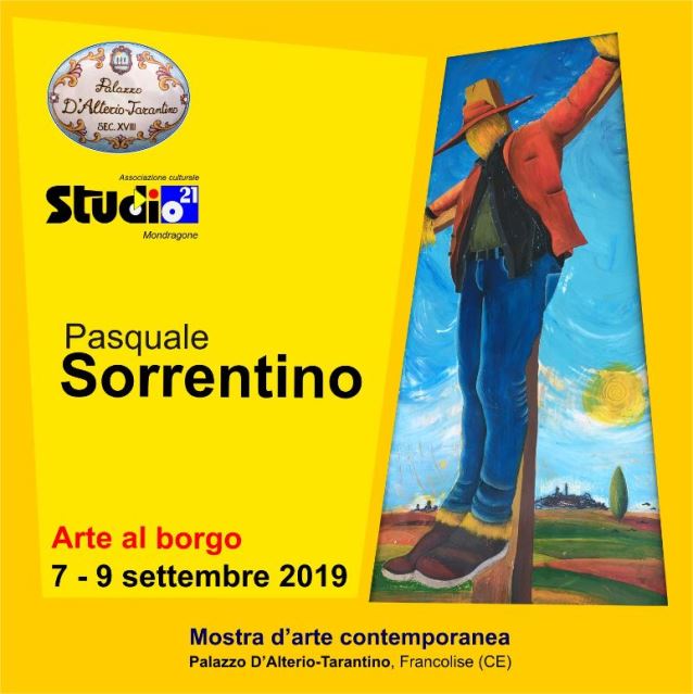 FRANCOLISE – Parte il progetto artistico “Arte al borgo” dal 7 al 9 settembre. Dopo il recente successo riscosso a Carinola ed a Mondragone, l’artista Pasquale SORRENTINO, in collaborazione con il dott. Stefano D’ALTERIO, presenterà la sua arte a Francolise, nel sito del suggestivo settecentesco palazzo D’Alterio-Tarantino dal 7 al 9 settembre 2019. Il progetto artistico, denominato “Arte al borgo”, vedrà l’esposizione di circa 15 opere, frutto di un intenso lavoro di ricerca degli ultimi tre anni dell’artista.