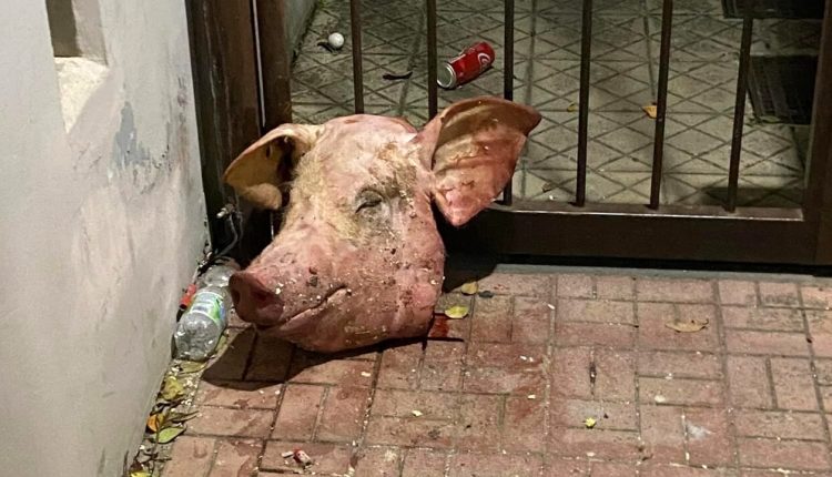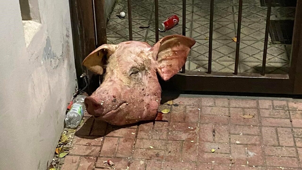 Questa notte a via Campanello, fuori al Parco Eva, residenza conosciuta per la presenza di tanti cittadini americani, è stata rinvenuta una testa di maiale.