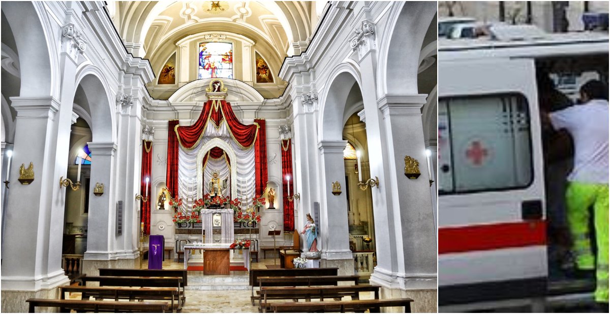 Questa mattina, durante la funzione della domenica, presso la Chiesa di Santa Maria Assunta, di Via Municipio a Recale, una signora, si è sentita male, accasciandosi a terra e perdendo i sensi, alla presenza del figlio e degli altri fedeli. Don Antonio Coscia, parroco della Chiesa ha subito interrotto la funzione, nell’attesa dei soccorsi, intervenuti prontamente con un’ambulanza.