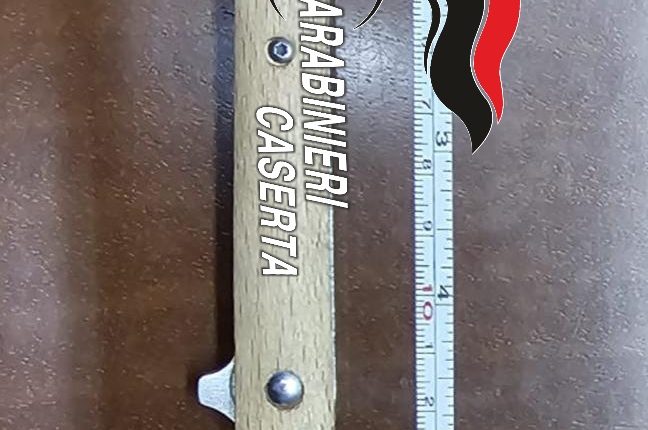 All’interno di un ripiano del suo armadio è stato rinvenuto e sequestrato un coltello a serramanico della lunghezza complessiva di 22 cm (di cui 10cm di sola lama).