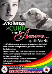 Il progetto è in collaborazione con il centro addestramento della Protezione Civile e l’associazione Gruppo Cinofili “Ecoby” presieduta da Tiziana Cioffi. Un’iniziativa nuova sul nostro territorio. L’affetto dei cuccioli potrà aiutare tante donne a riprendersi dallo choc della violenza subita.