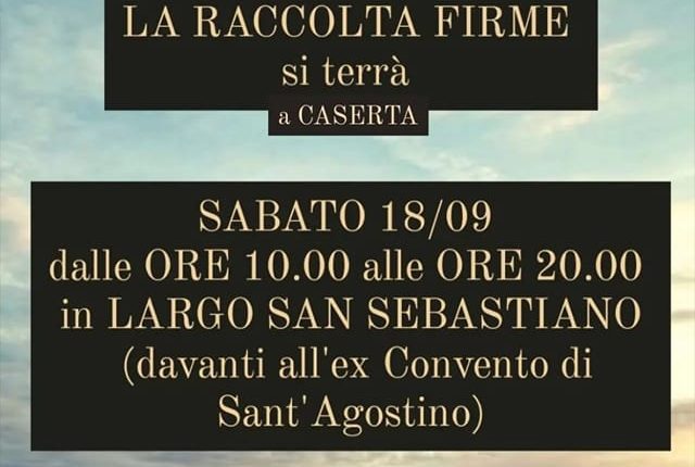 A Caserta è stata indetta una petizione sicuramente molto interessante sulla tematica che sfocia inevitabilmente anche nel discorso politico (siamo anche in periodo elettorale), pertanto chi volesse firmare o semplicemente essere informato su tutto ciò che sta accadendo, data anche la confusione delle informazioni anche da parte degli stessi medici che un giorno dicono una cosa, un altro giorno un’altra, può recarsi nei punti di informazione a Caserta nel prossimo weekend. Sabato a largo San Sebastiano dalle ore 10 alle ore 20.00 di fronte l’ex convento di S. Agostino.