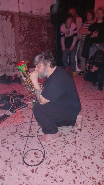 Dopo la presentazione del libro, volutamente senza titolo sulla copertina, come spiegato da Cenci e Benassi, quest’ultimo si è esibito in una performance. Inizialmente, sul ritmo sempre più incalzante di un violino elettrico e suonando una tromba elettrica, Benassi ha girato tra il pubblico scattando foto. Poi si è spogliato, mentre tutto intorno c’erano i flash di macchine fotografiche e cellulari. Alla fine ha sussurrato “Happy Birthday” alla violinista e si è rivestito.