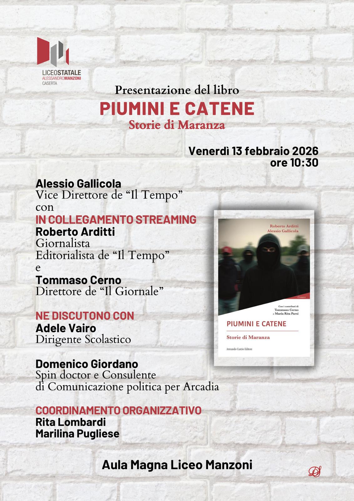 Gli autori del libro Piumini e catene, storie di Maranza , Alessio Galicola e Roberto Arditti presentano agli studenti del Liceo Manzoni un’inchiesta su questa nuova generazione, descrivendone con rigore chirurgico e senza giudizi il disagio che si nasconde dietro espressioni aggressive e spavalde, dietro alle catene agganciate ai jeans e dentro piumini lucidi e neri, esattamente tutti uguali.
