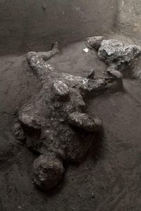 Così come nella prima campagna di scavo fu possibile realizzare i calchi dei cavalli, oggi è stato possibile realizzare quelli delle due vittime rinvenute nei pressi del criptoportico, nella parte nobile della villa oggetto delle nuove indagini.