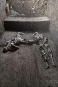 Durante le attività di scavo in corso in località Civita Giuliana,a circa 700 m a nord-ovest di Pompei, nell’area della grande villa suburbana dove già nel 2017 – grazie all’operazione congiunta con i carabinieri e la Procura di Torre Annunziata finalizzata ad arrestare il traffico illecito dei tombaroli – era stata portata in luce la parte servile della villa, la stalla con i resti di tre cavalli bardati, sono stati rinvenuti due scheletri di individui colti dalla furia dell’eruzione.