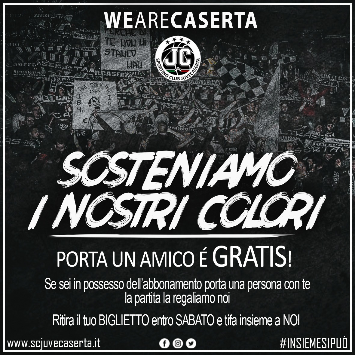 Per la gara con l’Urania Milano, in programma domenica 15 dicembre al Palamaggiò con inizio alle ore 18.00, ritorna l’iniziativa “Porta un amico al Palamaggiò”. La promozione è riservata a tutti coloro che hanno sottoscritto un abbonamento all’attuale stagione sportiva. Presentando la tessera esclusivamente all’apposito ufficio del Palamaggiò, infatti, ogni abbonato riceverà in omaggio un tagliando per lo stesso ordine di posto. I biglietti potranno essere ritirati da martedì 10 a venerdì 13 dicembre dalle 17.00 alle 20,00 e sabato 14 dalle 10.00 alle 12.00. Sarà possibile anche prenotare i biglietti via e-mail all’indirizzo ticket@scjuvecaserta.it indicando il nome e cognome, il settore, i numeri C/N 00000000 e il progressivo 00000000, presenti sulla tessera. Il ritiro, dietro presentazione dell’e-mail di risposta e di un valido documento di riconoscimento, potrà avvenire nei giorni ed orari suindicati od al botteghino del Palamaggiò negli orari di apertura di domenica prima della gara.