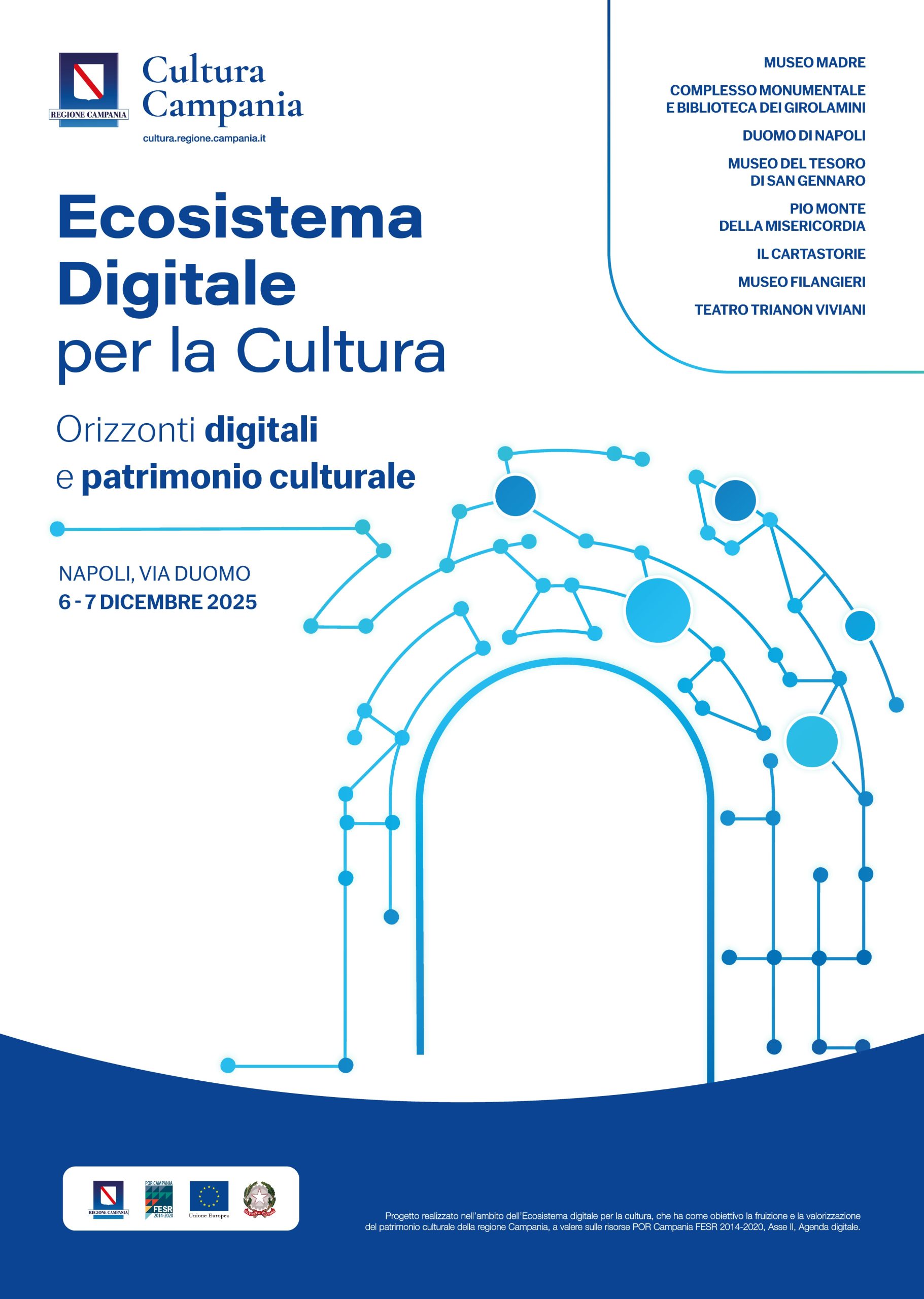 La Regione Campania, attraverso la Direzione Generale Politiche Culturali e Turismo, presenta il 6 e 7 dicembre a Napoli, lungo Via Duomo – la “Strada dei Musei”, la prima edizione di “Cultura Campania – Ecosistema Digitale per la Cultura. Orizzonti digitali e patrimonio culturale”. L’evento è dedicato alla piattaforma regionale che promuove e valorizza il patrimonio culturale mediante l’impiego delle tecnologie digitali, raggiungibile all’indirizzo cultura.regione.campania.it.