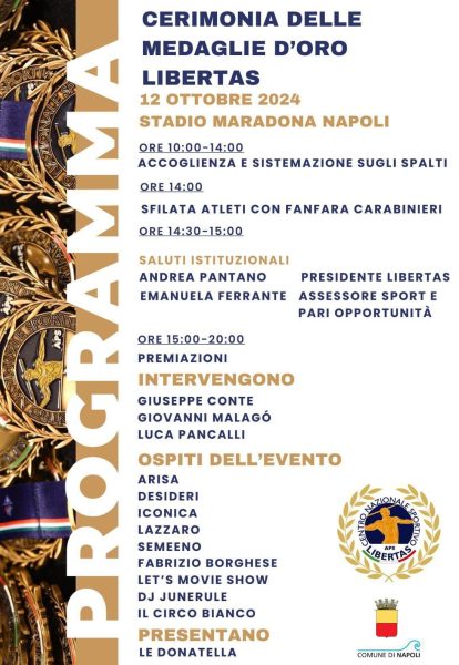 Nell’ambito della cerimonia delle medaglie d’oro Libertas, alla presenza di numerose autorità come l’ex premier Giuseppe Conte, il presidente del CONI Giovanni Malagò, il sindaco di Napoli Gaetano Manfredi e il vicedirettore generale Lorenzo Lomanno, oltre che di tanti artisti del mondo dello spettacolo e della musica, ben due sono stati i maddalonesi premiati.